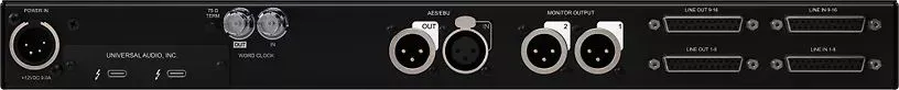 легкое подключение к профессиональному студийному оборудованию благодаря 16 x 16 аналоговым входам/выходам через разъемы DB-25, а также переключаемым настройкам уровня усиления +24 dBu;