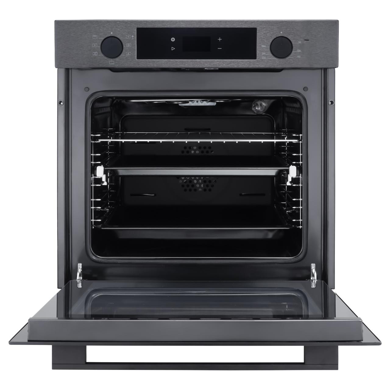 Духовой шкаф оснащен системой каталитической очистки паром Steam Cleaning, что облегчает процесс уборки после приготовления еды. Эмаль легкой очистки также помогает сохранить духовой шкаф в чистоте.
