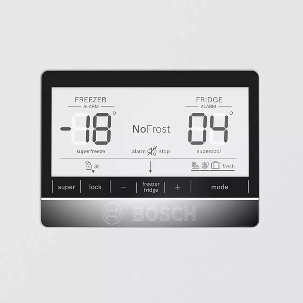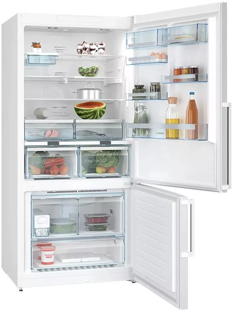 Двухкамерный холодильник Bosch KGN86AW32U — это продуманное решение для большой семьи, где важны удобство, порядок и стабильная свежесть продуктов. Отдельностоящая модель с нижней морозильной камерой органично вписывается в современный интерьер: белый корпус и аккуратная вертикальная накладная ручка выглядят лаконично и аккуратно, а электронное управление с дисплеем упрощает повседневное использование.