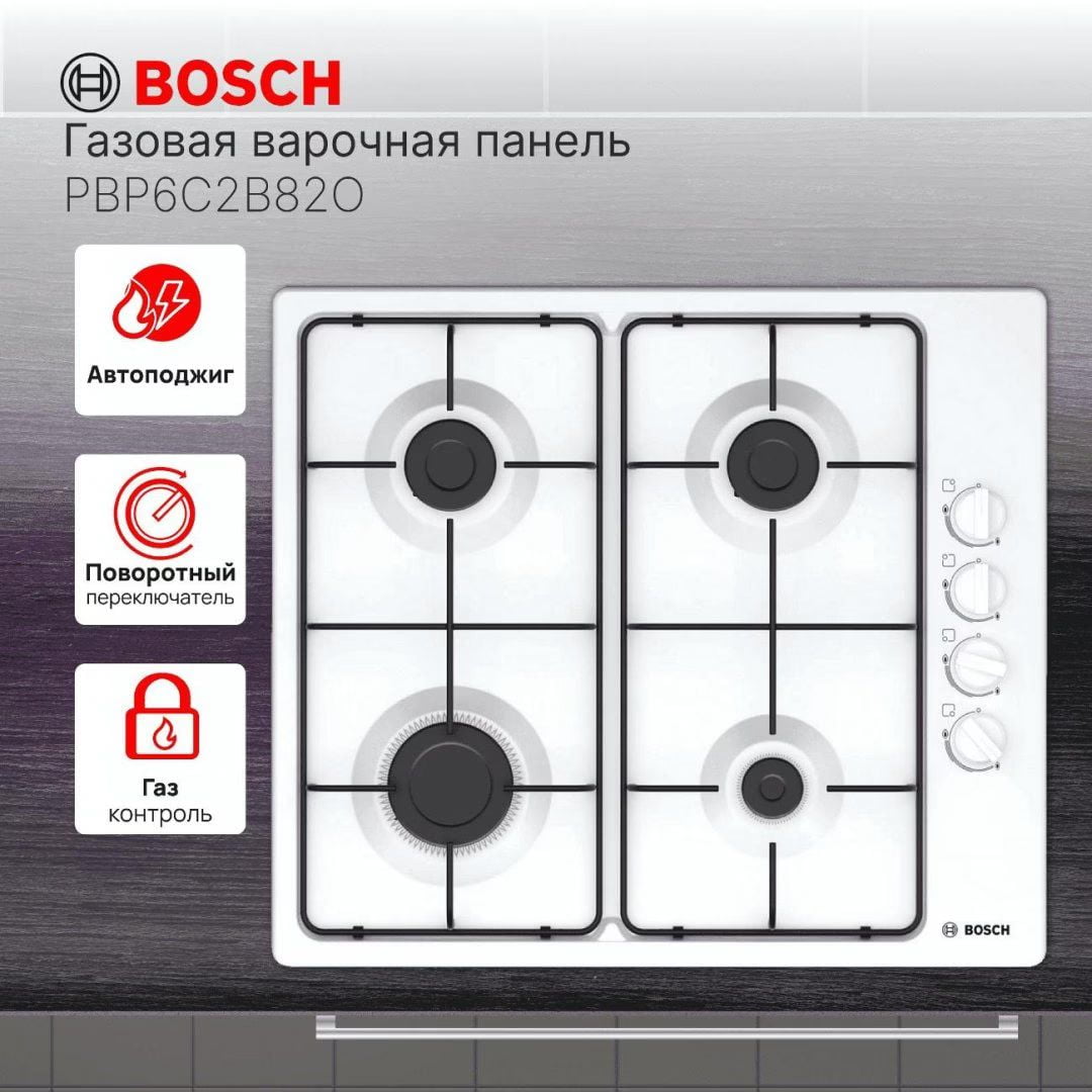 Газовая варочная поверхность Bosch PBP6C2B82O RU, белая