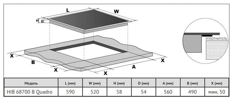 Индукционная варочная панель Korting HIB 68700 B Quadro RU, черная
