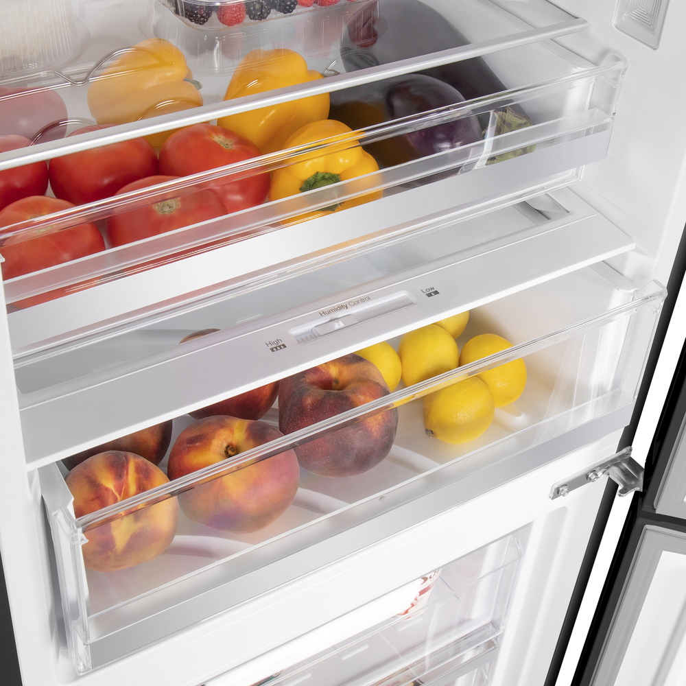 В основе модели — инверторный компрессор, который обеспечивает стабильное охлаждение, долговечность и тихую работу. Уровень шума всего 35 дБ, поэтому MAUNFELD MFF185NFB Inverter уместен даже в кухне-гостиной: техника не отвлекает от отдыха и общения.