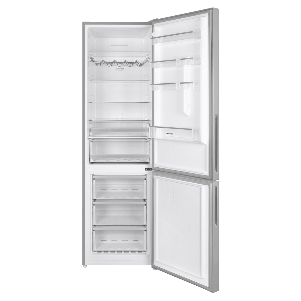 Ключевые преимущества этой модели — полный NoFrost в холодильном и морозильном отделениях, инверторный компрессор, класс энергоэффективности A++, низкий уровень шума 37 дБ. Вместительный полезный объём и удобные аксессуары вроде решётки для бутылок и формочки для льда делают MAUNFELD MFF200NFS Inverter практичным выбором для семьи.