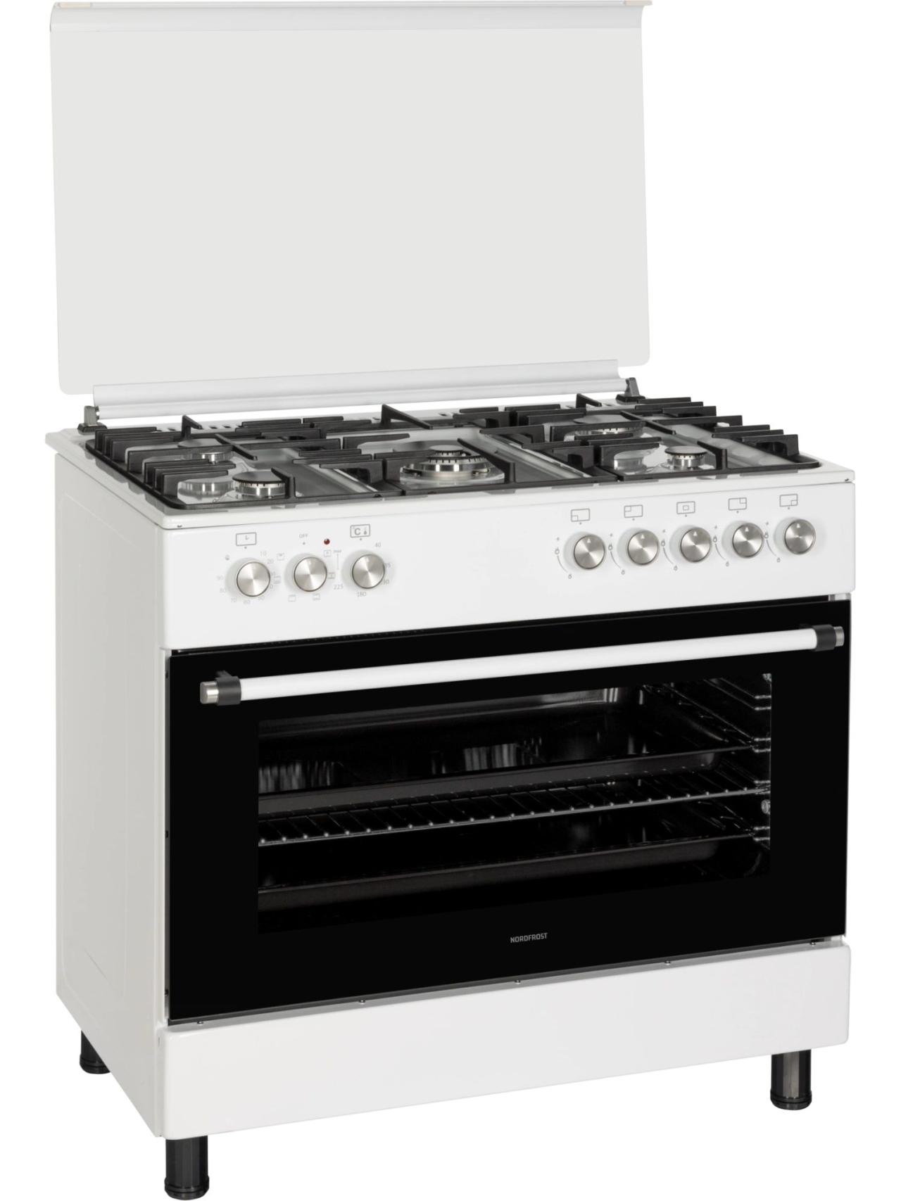 Выполненная в лаконичном стиле широкая газоэлектрическая плита NORDFROST GE 9062 W оснащена духовкой объемом 110 литров и варочной поверхностью на 5 газовых конфорок. Модель позволяет готовить увеличенное количество блюд одновременно, что актуально для большой семьи.