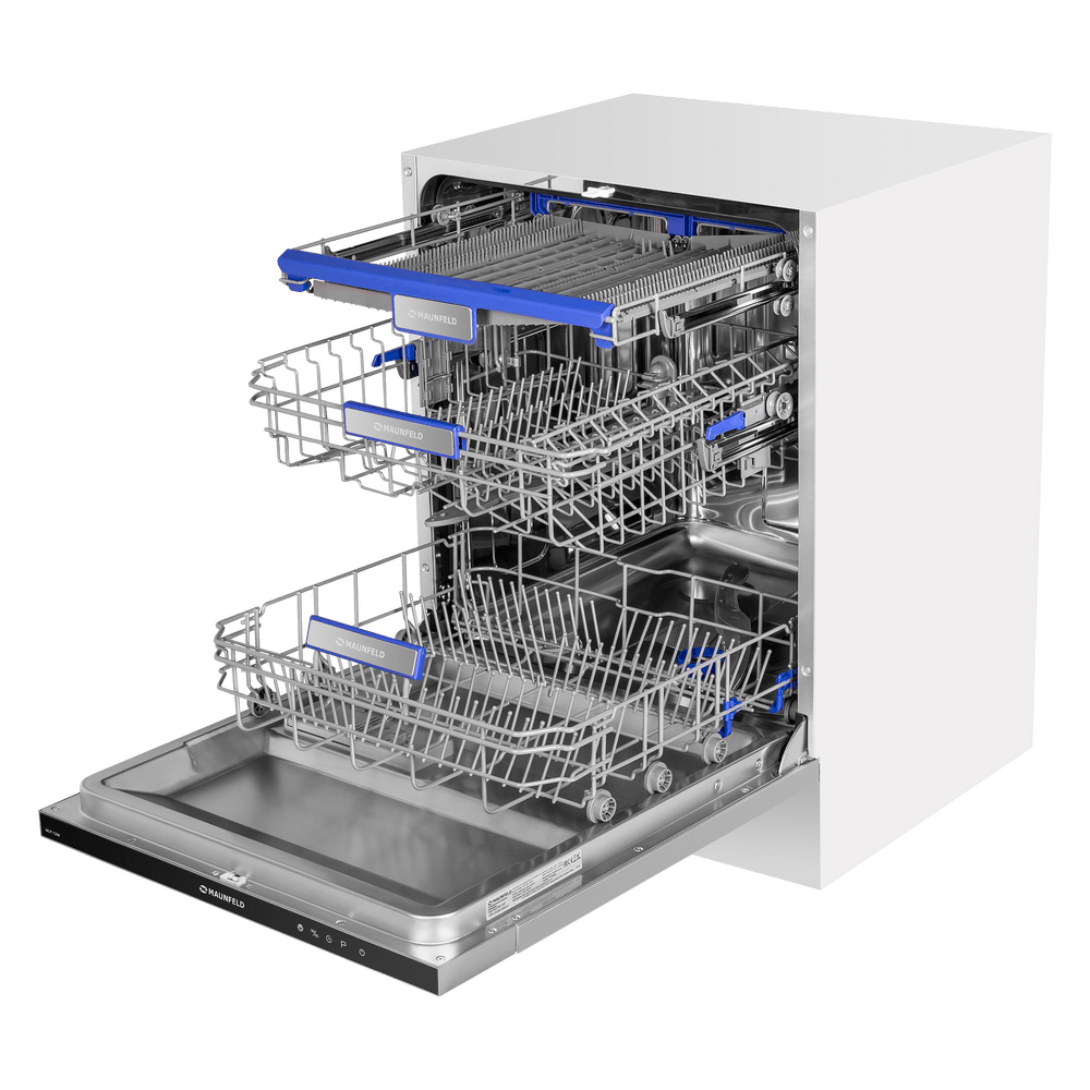 Полноразмерная встраиваемая посудомоечная машина MAUNFELD MLP-12IM сочетает в себе современный дизайн и высокую функциональность. Она оснащена специально разработанными корзинами и дополнительным выдвижным лотком для столовых приборов, что позволяет вымыть до 14 комплектов посуды за один цикл. Внутренняя поверхность из нержавеющей стали толщиной 0.6–0.8 мм гарантирует долговечность и надежность даже при активной эксплуатации.