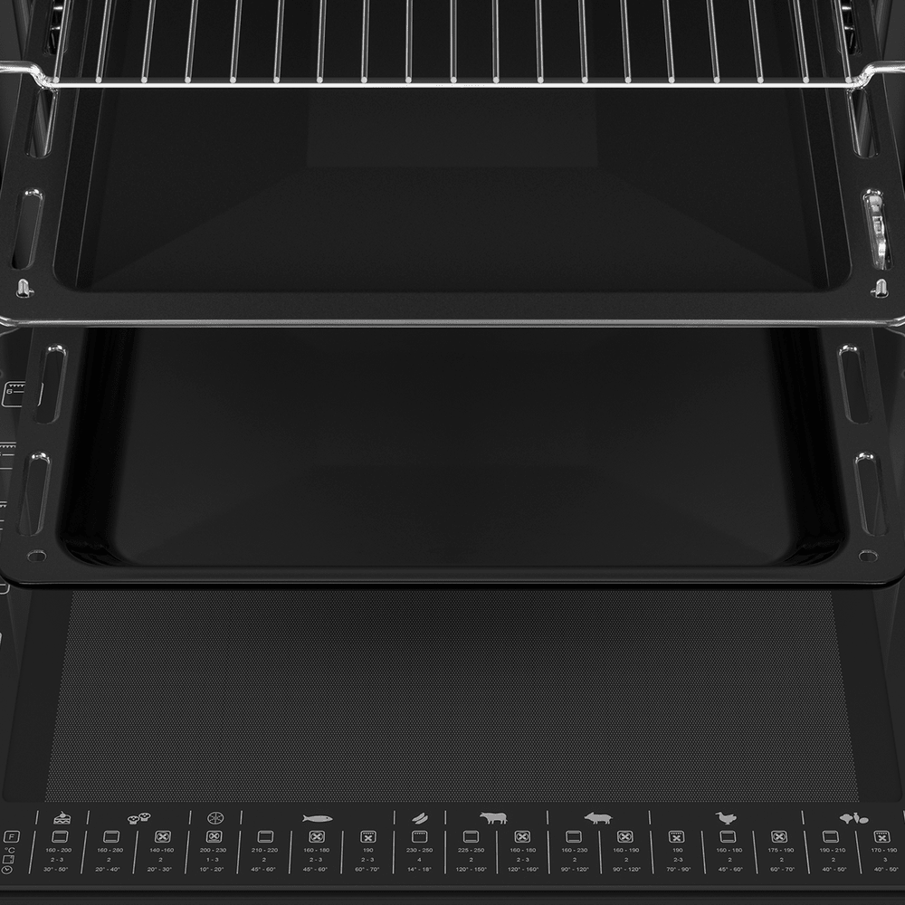Интуитивное сенсорное управление с дисплеем делает настройку параметров максимально простой: касание — и нужный режим активирован. Тройное стекло дверцы и «холодный фронт» повышают безопасность, снижая нагрев внешнего стекла при работе духовки.