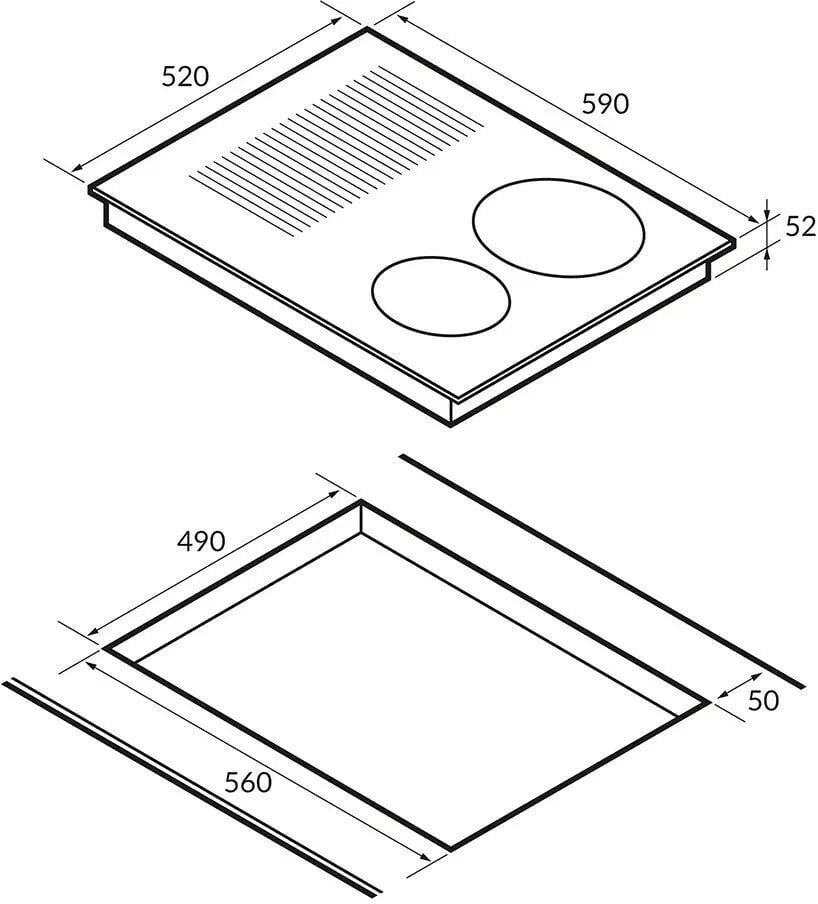 Размеры конфорок: 160 мм, 180 мм, 210 мм