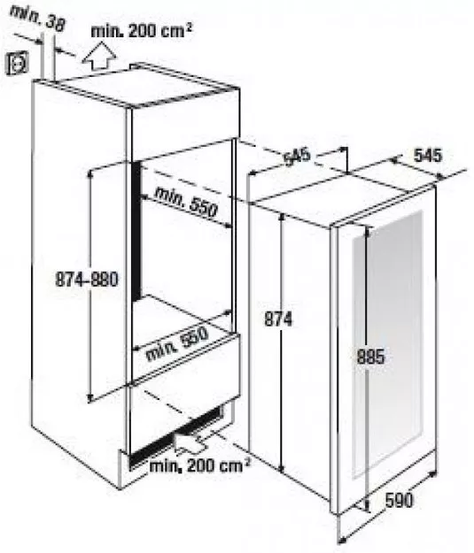 Размер ниши для встраивания (В×Ш×Г): 87.8 × 56 × 55 см