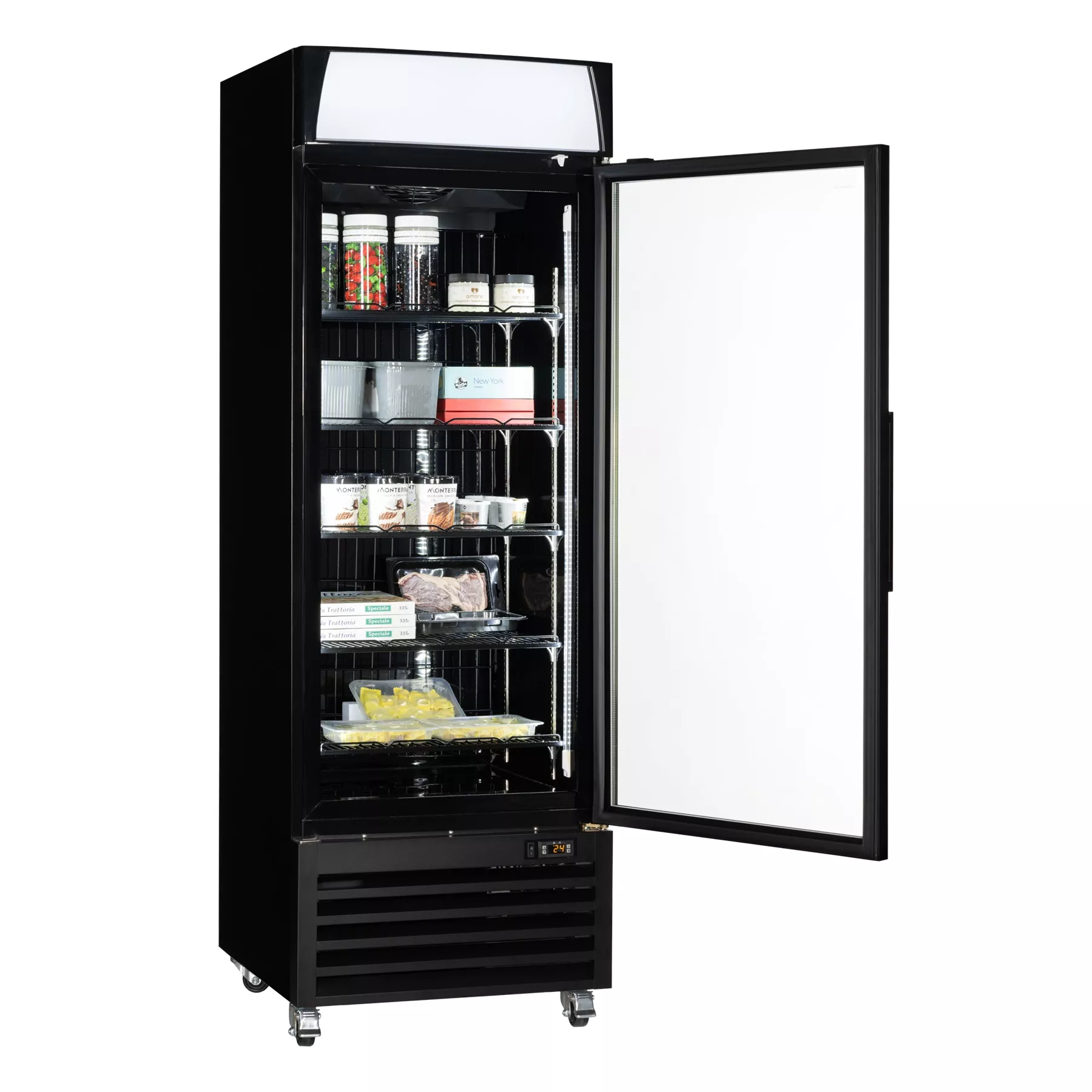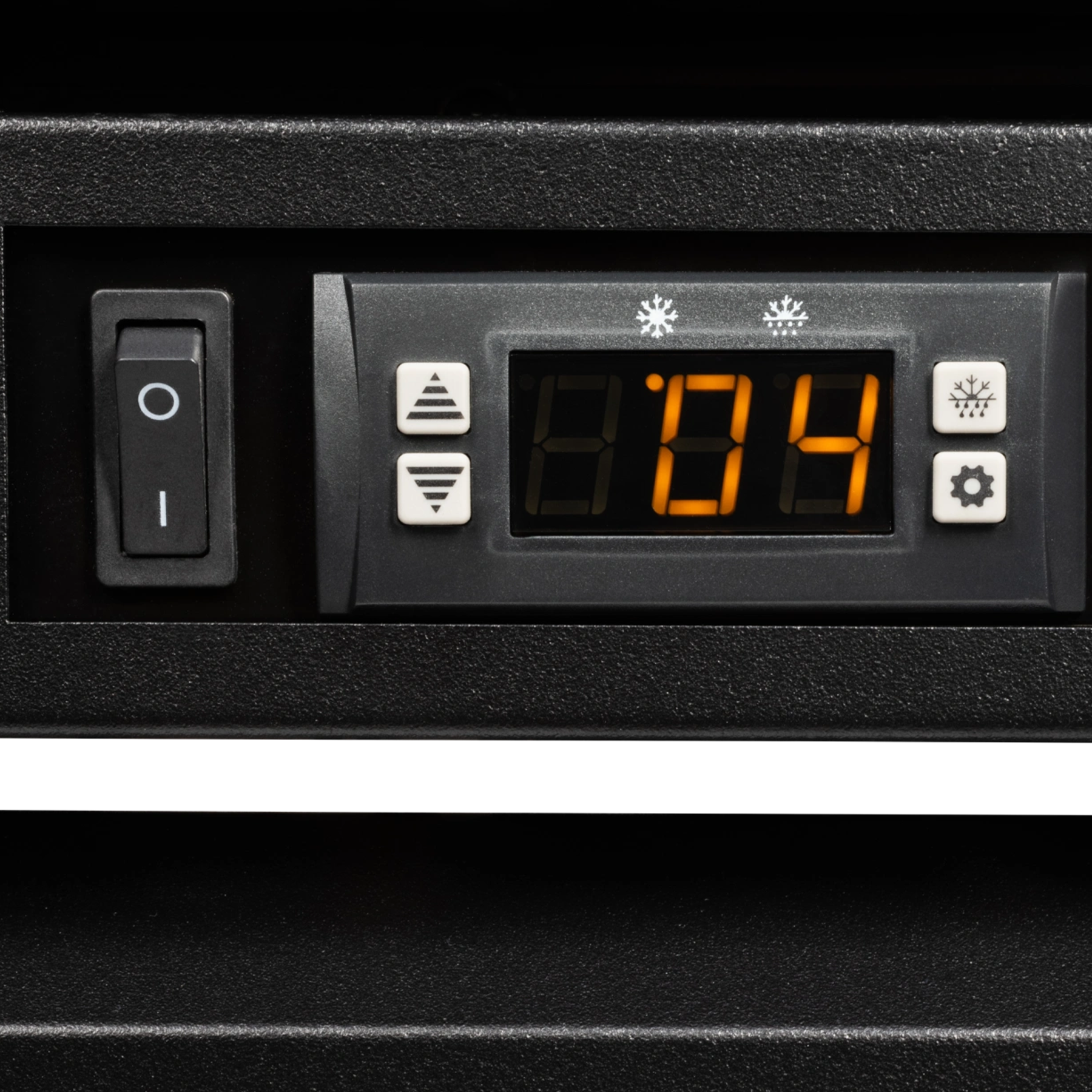 Дверца: из трёхслойного закалённого стекла с ультратонкой рамой (обеспечивает хороший обзор и минимизирует потери холода).