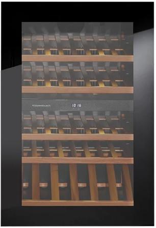 Встраиваемый винный шкаф Kuppersbusch FWK 2852.0 S — это элегантное и технологичное решение для хранения и созревания вин, выполненное в лаконичном дизайне с фасадом из черного стекла. Единая дверца со стеклопакетом в черной окантовке выглядит аккуратно и не перегружает мебельный ряд, а открывание простым нажатием (push-to-open) позволяет обойтись без выступающей ручки. Внутреннее пространство разделено на две независимые температурные зоны с возможностью индивидуальной настройки в диапазоне 5–18 °C, что идеально подходит для одновременного хранения белых и красных вин. Электронное управление с цифровым дисплеем обеспечивает точный контроль параметров. Система охлаждения компрессорного типа с динамическим распределением воздуха гарантирует равномерное поддержание температуры и влажности по всему объему. Шкаф вмещает до 52 бутылок объемом 0.75 л, размещенных на 5 деревянных полках, включая специальную демонстрационную полку для эффектной подачи редких экземпляров. Тонированное стекло с защитой от УФ-излучения предохраняет вина от вредного воздействия света, а резервуар для воды обеспечивает дополнительное увлажнение. Светодиодное освещение деликатно подсвечивает коллекцию без нагрева. Модель оснащена звуковой индикацией открытой двери и световой сигнализацией неисправностей. Низкий уровень шума 38 дБ и годовое энергопотребление 162 кВт·ч (класс G) делают эксплуатацию комфортной и экономичной. Производство — Германия, гарантия 3 года.