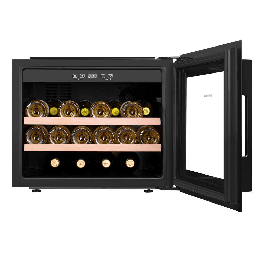 Широкий температурный диапазон 5–20 °C позволяет хранить красные, белые и игристые вина, а также готовить их к подаче. Встроенный вентилятор обеспечивает равномерное распределение холода по всем полкам, сохраняя стабильные условия хранения.