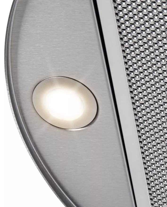 Устройство оснащено сенсорной панелью, что делает его использование максимально комфортным и интуитивно понятным. Три скоростных режима позволяют адаптировать работу вытяжки под интенсивность приготовления пищи. Цифровой дисплей предоставляет четкий контроль над всеми функциями, упрощая взаимодействие с устройством. Одной из ключевых особенностей модели является периметрическая система всасывания P.A.S. , которая гарантирует равномерное и эффективное удаление воздуха. Алюминиевый жировой фильтр легко очищается и защищает устройство от загрязнений, сохраняя его работоспособность. Светодиодное освещение с двумя лампами мощностью по 1 Вт создает комфортную атмосферу и обеспечивает отличную видимость рабочей зоны. Функция таймера позволяет контролировать время работы устройства, экономя электроэнергию. Уровень шума составляет всего 54 дБ, что делает использование вытяжки практически бесшумным.